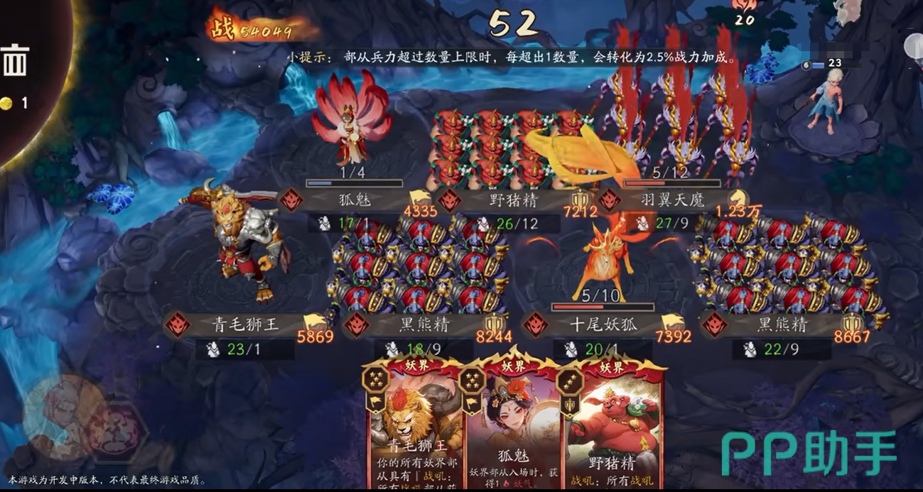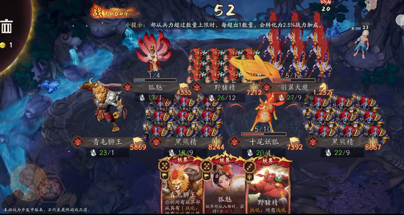 除了部从的强度与数量之外,战斗中站位的重要性也不可忽视。游戏开始时阵容的配置会对战斗结果产生影响。在天书阶段时,远端三个位置为前线,适合放置一些生存能力较好的前排部队来抵挡敌人的进攻。而靠近前排的四个后排位置,则可以布置远程输出型部从,使他们可以更安全地输出火力。站位不当的话,即使战力占优,也可能会因为位置错误而失败。因此玩家要了解各个部从的特点,做出合理的站位安排。 代号妖鬼的玩法机制十分简单,这样就让新手玩家可以更快地上手。丰富的策略选择也使的老玩家不断地去尝试不同的阵容和搭配,在战斗中获得胜利。无论是通过等级的提高、人数的增多,还是站位的巧妙,玩家都可以在这一神秘的国风世界里找到属于自己的胜利之路。