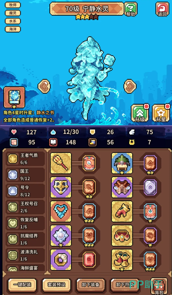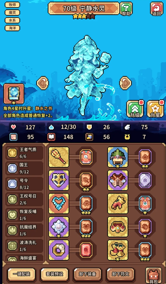 在开荒时期,玩家主打的就是推图,并且还需要挑战日常的资源副本,此时玩家可以选择宁静水灵作为辅助。辰龙作为主c,水晶菇娘作为拉条。在这里,对于众多的玩家来说,成龙能够有效的依赖滋润来达到增伤的目的,宁静水灵的群体治疗跟滋润的覆盖其实是比较厉害的,并且在战斗的过程当中,它其实还能够提供生存跟增伤的目的,在这里,水晶菇娘的魔力回转加速,就能够有效地解决辰龙技能释放的频率。