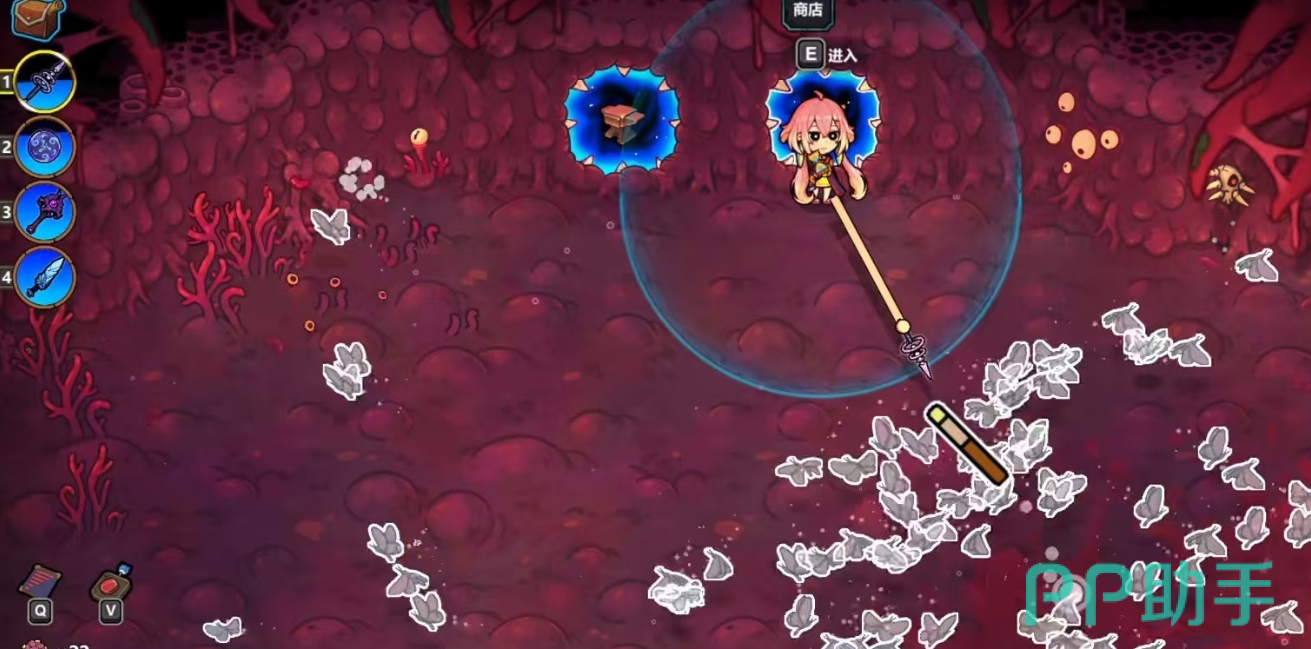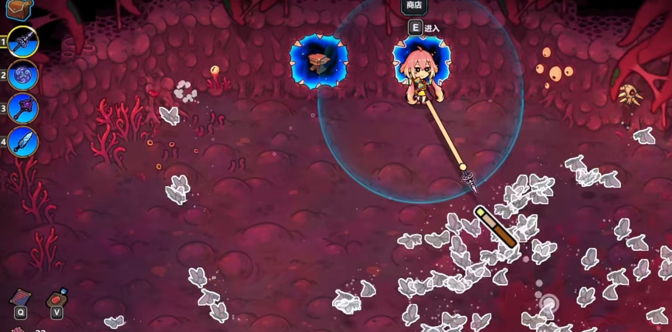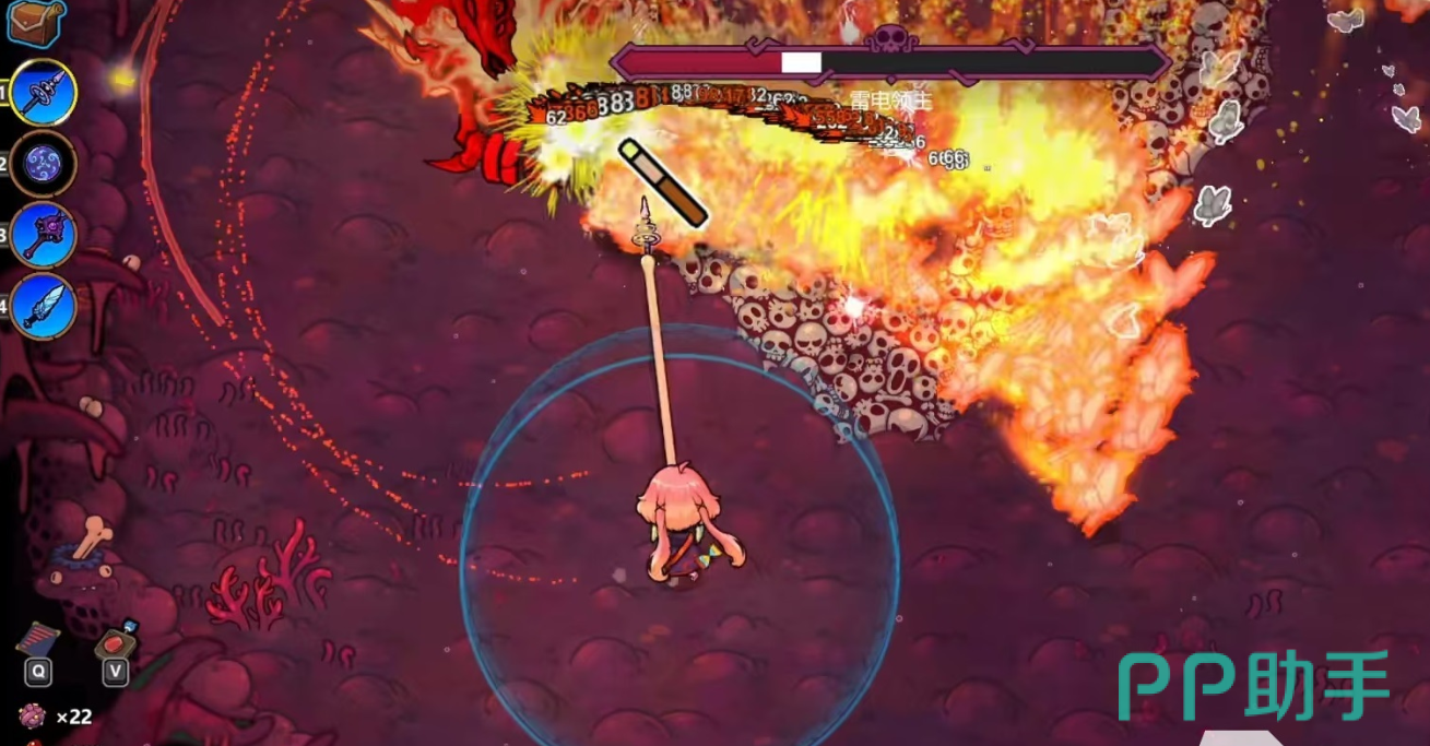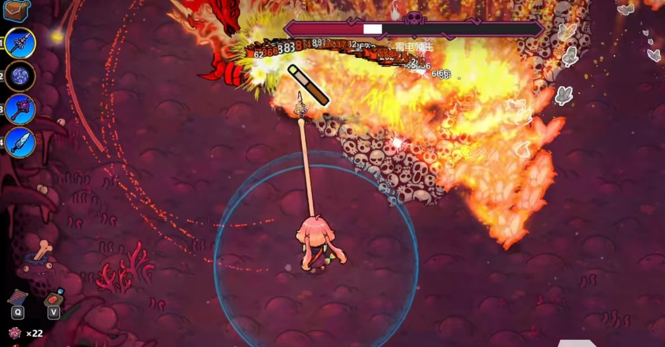 在技能组合使用中,分裂与雷霆核心结合之后会产生非常高的伤害。以蝴蝶技能为例,三只蝴蝶造成的伤害为8×3=24,雷霆核心技能在爆炸之后还会产生范围伤害。雷霆核心造成的输出是8的25%,也就是2滴血,而每一个分裂出来的小蝴蝶也都可以继承这个效果,九个小蝴蝶的总伤害就变成了18!所以,最终一轮的伤害就可以达到24+18=42,在游戏初期这个数值非常强势。