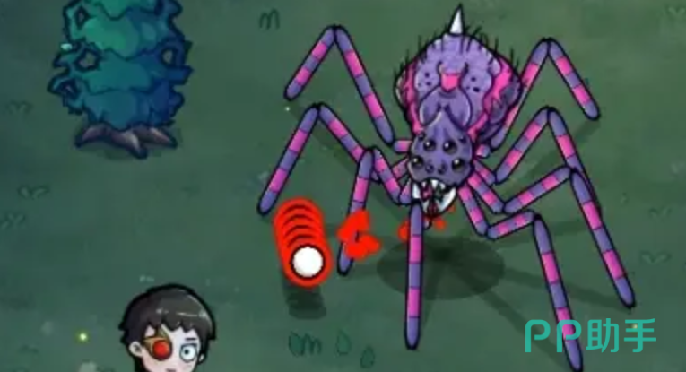 第三种攻击方式为蛛网球攻击。巨蛛会积蓄力量后吐出蛛网球,击中玩家会直接造成伤害,落地后留下的蛛网会使玩家动作变慢。当面对这样的攻击时,玩家应该仔细观察蛛网球落地后的阴影,从而提前预判出蛛网球落地的位置,进而避开蛛网球落地的地方,防止被精准打击。