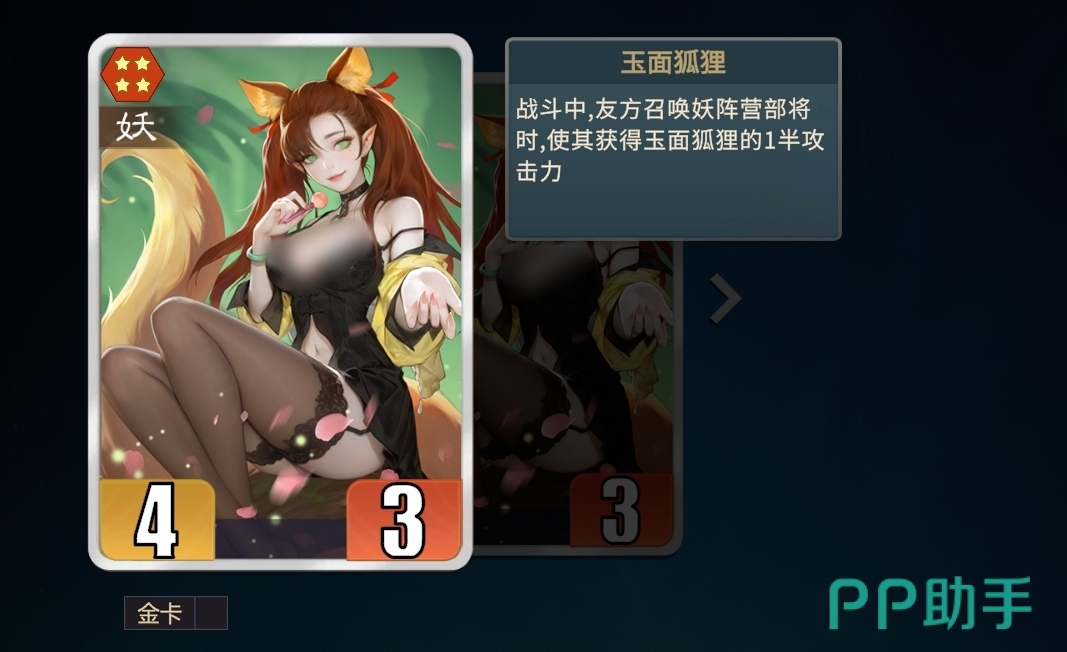 以玉面狐狸为流派核心的阵容,利用玉面狐狸能让友军召唤妖族部将时叠加她攻击力的特性,令每位被召唤出来的妖族部将都能打出极高的输出,所以一旦流派阵容构建成型,整个阵容就不会再缺伤害。再加上玉面狐狸又是四星部将,在商店里的数量很多,人们也只需三张合出金卡就行,所以阵容组建时基本不会卡手,只要不是运气太差都能快速搭配好。其最终阵营可上阵两个白象精与两个牛魔王作为部将召唤工具人。