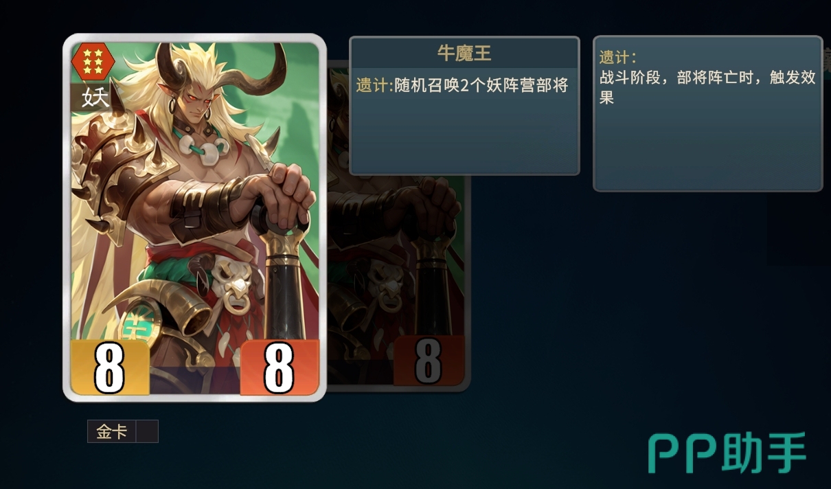 利用玄武能让遗计触发两次的特性,配合上九尾与饕餮的能力,也令遗计妖流派变得极为火热。在此阵营中,妖族阵营只需拿两名部将即可,分别是牛魔王和铁扇公主。其中,牛魔王可在阵亡后触发遗计来召唤妖族部将,以此来触发铁扇公主为妖族阵营加数值属性的能力,并且玄武等三名中立部将的角色能令这一联动效果扩大,使得每一回合铁扇公主都能为妖族叠加大量的数值,只需几个回合就能完成发育,即便没能拿到玄武等中立部将,也可改为召唤流。