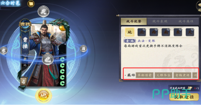 不同羁绊的实战效果会有所区别,可以先看一些实用性比较出色的组合。例如曹操和诸葛亮有草船借箭的战术技能,诸葛亮在第1次受到曹操手牌伤害时,就可以抵消伤害,然后获得这张卡牌。例如剑雨骑射技能攻击时,诸葛亮就可以直接触发羁绊,把这一张群攻牌收入囊中,然后第2次使用。曹操和关羽的义释华容,这主要是偏向于辅助联动,关羽在开局时就可以直接装备司马兔,回合开始之后就能多摸牌。