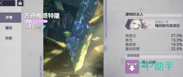 接下来聊聊遗物。遗物相当于角色的装备,能提供属性加成还有额外技能。每个遗物都有对应的专属精灵,给专属精灵装备上之后不仅属性合适,还能触发技能效果,提升幅度非常大。当然其他精灵也可以装备遗物,只是吃不到技能加成,但属性提升还是有的。遗物初始是1级,需要用遗物石来强化升级。1到10级用普通遗物石,11到20级要高级遗物石,再往后就得用太古遗物石了。这些材料在记忆回廊、领地打工还有战利品玩法里都是可以刷到的,商店也可以兑换一些。