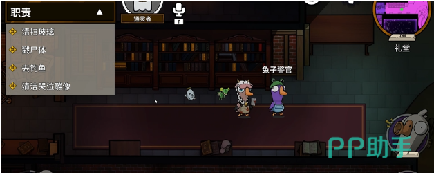 作为信息中枢,通灵者的战术价值也会体现在两个方面。第1个是通过幽灵数量的变化去推断局势,刀人会有一个冷却时间,在检测到幽灵数增加的10秒内相对还是比较安全的。这个时候就需要主动去寻找目击者,如果长时间没发现尸体,幽灵的数量却上涨,这应该是遇到了特殊的角色,例如专业杀手。此外,还需要和其他的角色配合形成信息链。例如和网红搭配就比较有默契。网红死亡时就会触发警报,鸭子和中立阵营并不知道这一个机制,通灵者就可以伪装成网红已死。观察谁的反应异常,然后找出潜在的敌人。