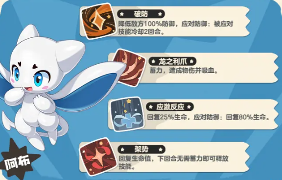 需要明确的是,当前版本中阿布的实战表现存在明显场景分化:在PVE副本、Boss挑战及日常任务中,其爆发稳定性与清场效率优势突出;但在PVP对战环境下,受限于启动慢、容错率低、缺乏先手压制力等问题,整体胜率偏低。即便通过驾驶机制取消下回合蓄力限制,仍需至少两回合准备时间,面对高机动性对手或稀兽花种等快节奏单位时,难以稳定达成理想输出节奏。若玩家主攻剧情推进与副本攻坚,阿布仍是值得投入资源培养的核心选择。