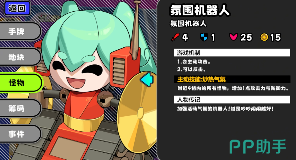 获得高升炮后,应优先锁定氛围机器人。该单位持续为周边怪物提供生命值与防御力加成,若放任其存活至中后期,将大幅抬高后续清怪成本。及时清除氛围机器人,不仅能打断敌方增益循环,还可顺利推进主线任务进度,从而获取金币与行动点数,用于购置强化类卡牌或升级角色能力。