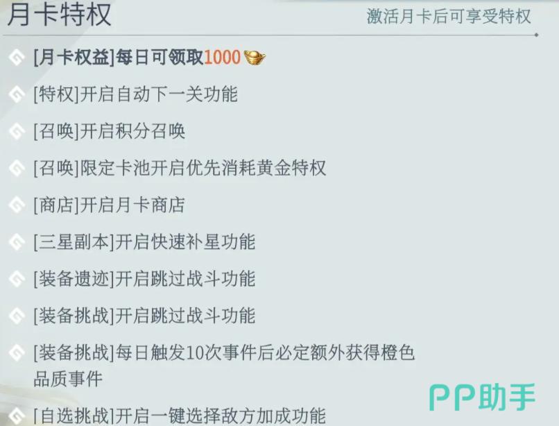 激活后同步开放“积分召唤”系统,支持更科学的抽卡节奏管理;在限定卡池中,黄金特权将优先消耗,避免常规资源错配;月卡专属商店还接入装备挑战中的橙色事件保底机制,提升高品质养成材料的稳定产出效率,加速主力阵容构建进程。