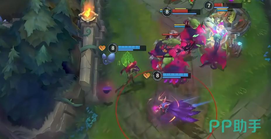 W技能“狂野生长”新增协同机制:施放时自动为施法者周围已存在的植物注入激素,使其进入狂怒状态——重置存活时间,并额外获得护盾值与攻击速度加成,显著提升植物持续作战能力与战术容错率。
