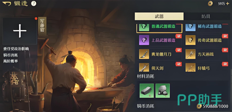 可锻造装备分为两大类:武器与防具。不同定位武将对装备属性需求存在显著差异——输出型武将侧重攻击、暴击与命中属性;辅助型需堆叠效果命中、治疗加成与减益抵抗;坦克型则优先选择生命值、防御力与格挡率相关词条。因此,在图纸选择与材料配置阶段即应明确目标武将定位,避免资源错配。