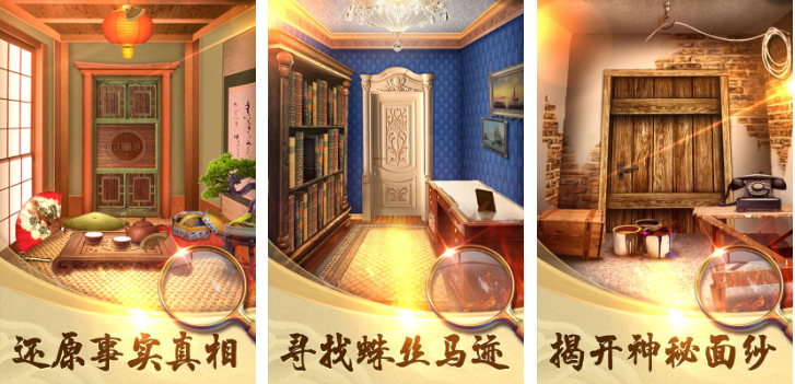 本作就是款可以使用密室逃脱方式进行闯关的解谜手游,破解谜题的设定跟开门的机制交相呼应,神秘感拉满的气氛塑造更是这款解谜神作的亮点,类似侦探一般的解谜推理设定也很有创意,地图上各种道具和蛛丝马迹等待着玩家快速解锁,一百道神秘的门扉可以解锁不同的地图,你能根据线索快速还原事件真相吗!
