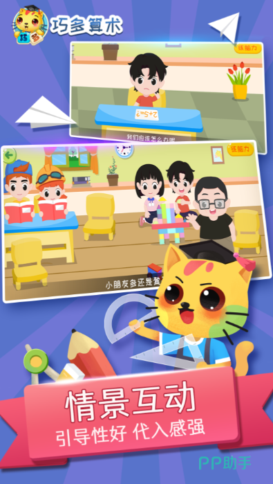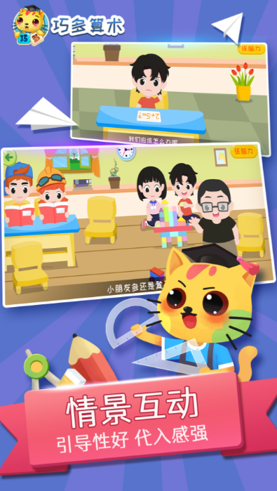 这款游戏为了让孩子学好数学,可谓是煞费苦心,设计了许多童趣盎然的动画短片,会有许多卡通小人在其中演绎,一步一步引导孩子掌握整数、平方数、百分数等知识要点,让孩子不至于反感数学。游戏还有联机玩法,孩子可以在游戏中与小伙伴相遇,开启答题竞争,看谁运算实力更为雄浑。