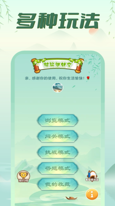 这款游戏集结古今流传的成语,设计了花样玩法,孩子要做的就是从杂乱无章的字里挑选并组合,形成一个成语,这极为考验孩子的智力,同时又对丰富孩子大脑的词汇量起到了关键作用。游戏的关卡已经达到上万之数,这才能令孩子玩个满意痛快而归。游戏为每一个成语设计了介绍面板,才让孩子深入了解了此些成语的释义出处。