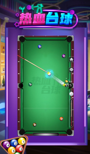 《热血台球》设置在一个台球竞技场上,大家需要从新手开始直面不同等级的对手,赢了就可以接受新的球杆以及赛场皮肤,核心在于经典方法上面增加了热血技能,像是击球触发加速效果,让球速更快更难防守,竞技氛围浓厚,对手会根据玩家的水平来调整策略,不会出现一面倒的情况,每局结局还有详细的数据统计。