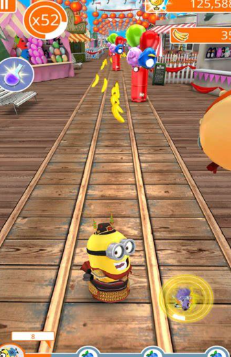 背景取自神偷奶爸电影,小黄人需要在实验室等场景里面完成奔跑,达成格鲁交代的任务,里面有多条路径可选择,不同路径的障碍以及奖励都不一样,小黄人等萌系动作会让整个游戏更加有趣味性,大家还可以给他们更换不同的服装,他们会带来一定的属性加成,让整个过程更加轻松。