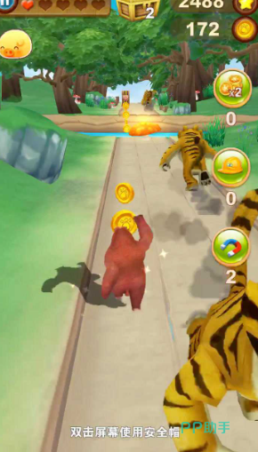 《熊出没之熊大快跑》游戏背景设定在狗熊岭,熊大为了阻止光头强砍伐树木,因此开始了追跑旅程,通过上下左右滑动操作,躲避光头强的陷阱以及森林里面的障碍,游戏场景还原度很高,还有动画里面的经典台词配音,让大家互动性十足。