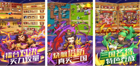 特别硬核的塔防手游,基于三国背景所创作,将塔防玩法以及rpg元素巧妙结合,众多优秀的三国武将再次展现,比如大乔小乔或者是关羽等等。这些人物都各有千秋,大家可通过正确招募以及正确组建的方式,拥有超强的阵容,来一场指尖上的三国历史战役对抗。