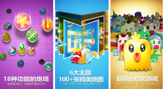 精美的游戏画风,带来6种不同的主题,每种主题中都有不同的可玩性,而大家也可从天际或者是丛林等不同的精美地图中,来回切换。在每次保护萝卜或者是正确放置炮塔的过程中,必须要对这些炮塔的功能有全面的认知和了解,其次还有20多枚不同的怪物蛋等大家来养育,成功孵化之后也可获得丰厚奖励。