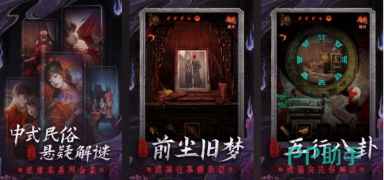 作为纸嫁衣系列中的正统续作,同样以唯美古风画面所展现,其中的女孩因为一场意外失忆,当参加演出项目之后,就可在不同的场景中逐渐探索,每个村庄里隐藏的秘密、难题都完全不同,还高度还原了很多标志性的民俗符号,就比如纸人或者是红布等等。在经济化的人物场景渲染之下,大家可通过各种方式破解谜题,比如华容道布局或者是碎片化拼图等。