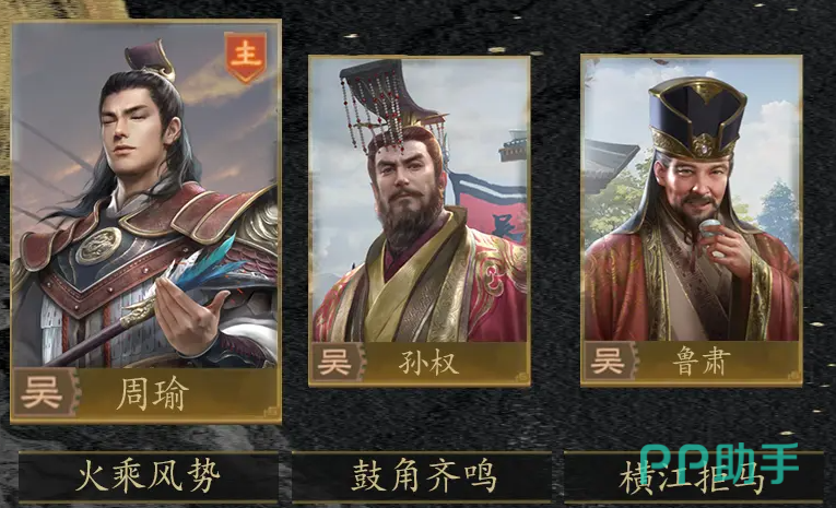 最后为大家介绍的就是江东燃烧弓队,大家就可以尝试用孙权、鲁肃来作为队伍核心,然后再放一个周瑜来搭配,此时利用弓兵的加成,带来的整体控场不差,而且还有足够的谋略输出,他们在团战能力上面持久的时间是非常长的,还可以克制一些走普攻流的阵容,因为队伍当中大家施加异常的机制是非常强大的,可以快速的造成各类影响伤害,那么孙权他在提升了队伍足够的统率之后,可以跟鲁肃一起来造成一个缴械的效果,鲁肃的话放在前排进行承伤,保证压制住对面的续航,然后可以与其他的技能进行联动,这样前期比较稳定的时候,大家也可以用出阵容里面需要的减伤能力,中期就依靠周瑜快速的进行输出,后期的话有足够续航之后,大家就可以快速的控场滚雪球,这样的话阵容当中不仅是开荒非常好用,在后期的野战以及团战上面他们能够遇到的阵容发挥强度也是更高一些。