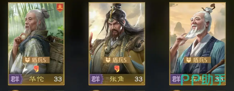 这里第一个可以考虑的就是三仙队,其中所用的左慈、华佗以及张角,他们其中的能力也是大家比较熟悉的,首先游戏当中的双c位就用张角和左慈,张角左慈放在这里的话,他们俩结合在一起的输出是比较高的,而华佗的话主要就做辅助流的来使用,因为张角配合左慈在这里可以吃到足够的增伤,他们后期再通过狂风暴雨能力触发了二段的高伤害数值之后,可以利用华佗来挂治疗,这样的话整体就可以形成一个技能循环的机制,有足够增强的时候,也是要依靠华佗他自身的一个技能提升效果,通过这样的续航能力可以直接拉满整体阵容的持续时间,技能效果后期大家要注意,他们一般是走一个指挥流也是比较稳定的,或者是可以做主动爆发的效果,兵种当中更适配的是盾兵,这样的话可以上一些肉盾士兵来造成提速,这样的阵容,其实大家前期只要拿到华佗的话就可以快速的做成型,而在适配度上面也是比较强的,战斗里面大家通过打野也可以快速提升三仙盾需要的经验。
