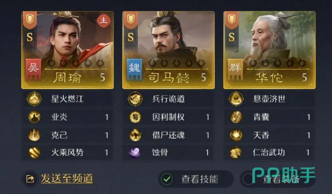 若暂缺左慈或张角,可选用同阵营或适配谋略输出体系的替代武将,如周瑜、司马懿等智谋型将领。替换后仍需维持“1辅助+2谋略输出”的基本结构,战法搭配亦应延续高发动率、强联动性的思路,确保输出节奏与华佗治疗周期形成良好匹配。