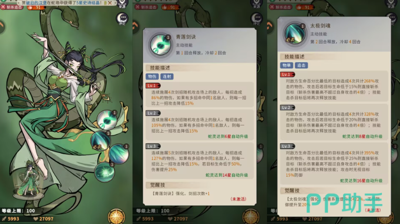 第二套进阶方案为高阶斩杀流,主打单体穿透压制与持续控场。核心双核为小青与白娘子:二者均具备挂毒能力,且小青拥有25%生命值斩杀判定——即对目标造成伤害时,若其剩余生命不高于该比例,将直接击杀,并同步获得控制免疫效果;此特性使其成为对抗强控阵容的首选。白娘子则通过寒冰效果降低敌方行动速度,延缓其技能释放节奏,为我方争取更长的斩杀窗口期。明妮建议部署于前排,兼具嘲讽与硬控能力,有效分担后排压力;玫瑰公主作为辅助位,提供护盾、治疗与复活三重保障,确保小青等核心输出单位在高压环境下仍能稳定完成斩杀循环。相较追击流,该体系更强调中后期单点突破能力与整体压制稳定性,容错空间更大。