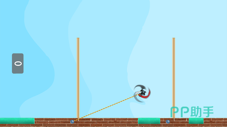 《小小跳跃忍者》这部作品在跑酷的机制上进行了精巧绝伦的革新,首先,游戏并没有进行起伏错落的跳跃平台打造,取而代之的是各种直耸天际的巨大长条物状,而且还将一根巨大的绳索与地面的铅球进行了结合,游戏里控制着忍者利用绳索进行大幅度的甩荡,去越过高低不一的木桩。