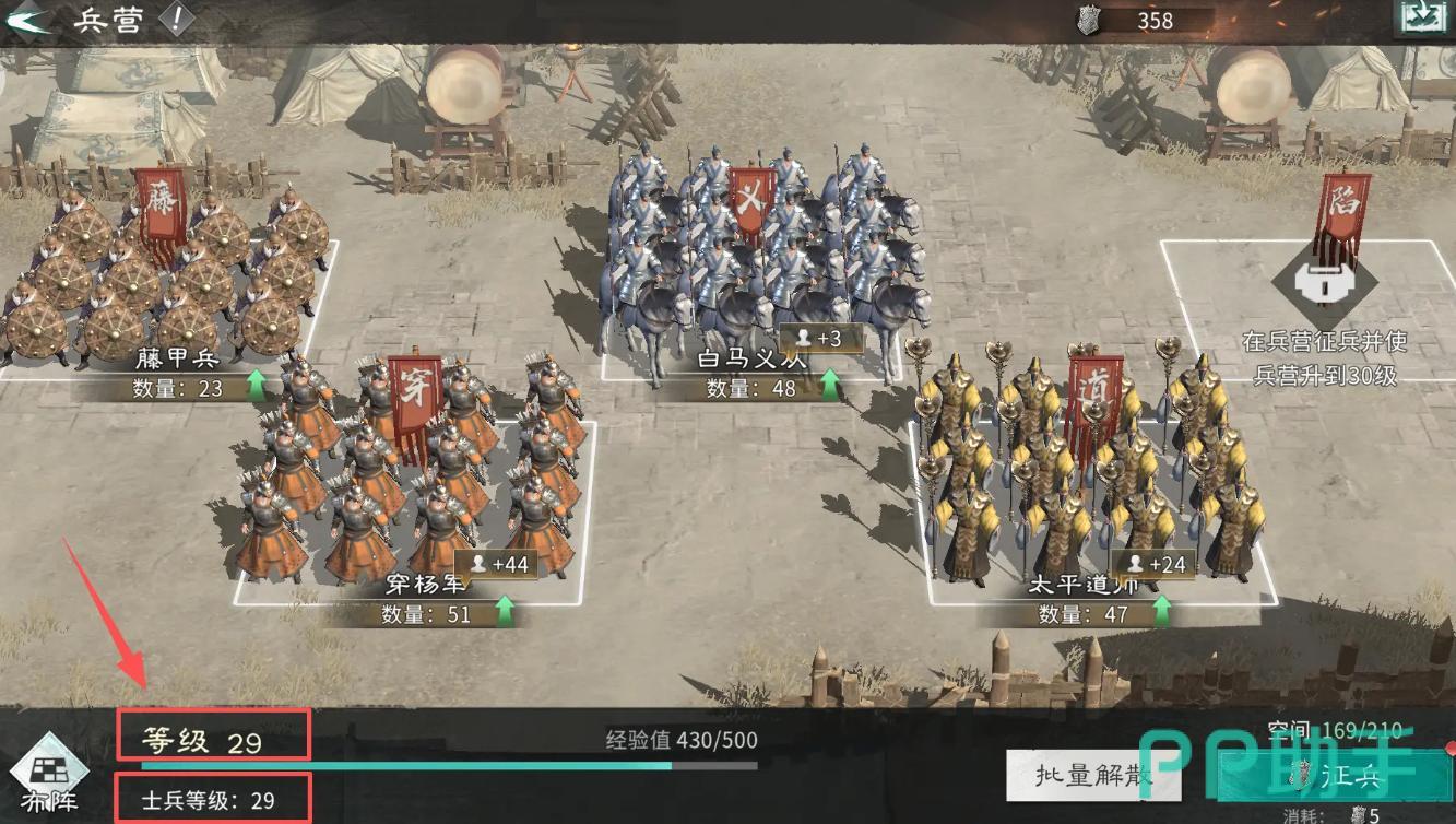 士兵等级不支持独立升级,完全依附于兵营建筑等级。兵营升至几级,所征募的士兵即自动获得对应等级的基础属性。因此,“兵营建设”是士兵养成的第一优先级事项。玩家需每日定时前往募兵所领取征兵令,并及时返回兵营完成征兵与升级操作。兵营等级越高,士兵初始攻防血量越扎实,后续技能、能力、四维等各项强化的收益倍率也同步提升——这是贯穿游戏全周期的底层基建工程。