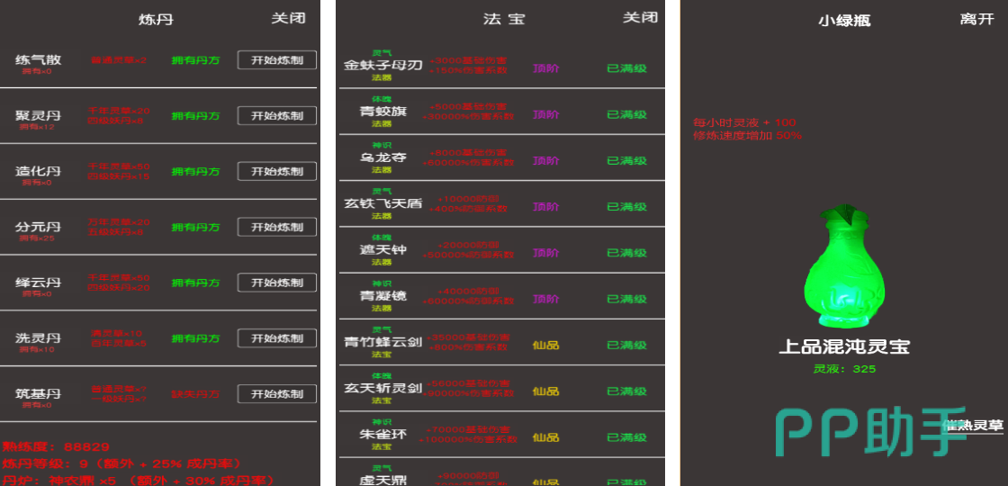 深度还原古典修真生态:丹方系统覆盖筑基、凝婴、化神三大阶段共137种丹药,炼制成功率受火候掌控、药材年份、炼丹师心境三重影响;功法体系分主修、辅修、禁术三类,可自由搭配突破瓶颈;副本掉落材料支持自主锻造本命法宝,属性随使用次数与心神灌注量动态成长;灵宠拥有独立成长线与战斗AI,可参与秘境开荒、排行榜冲榜及跨服远征等全场景玩法。