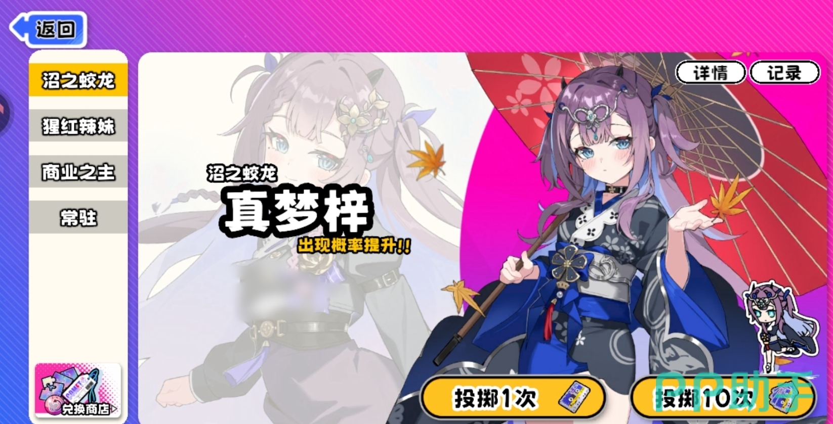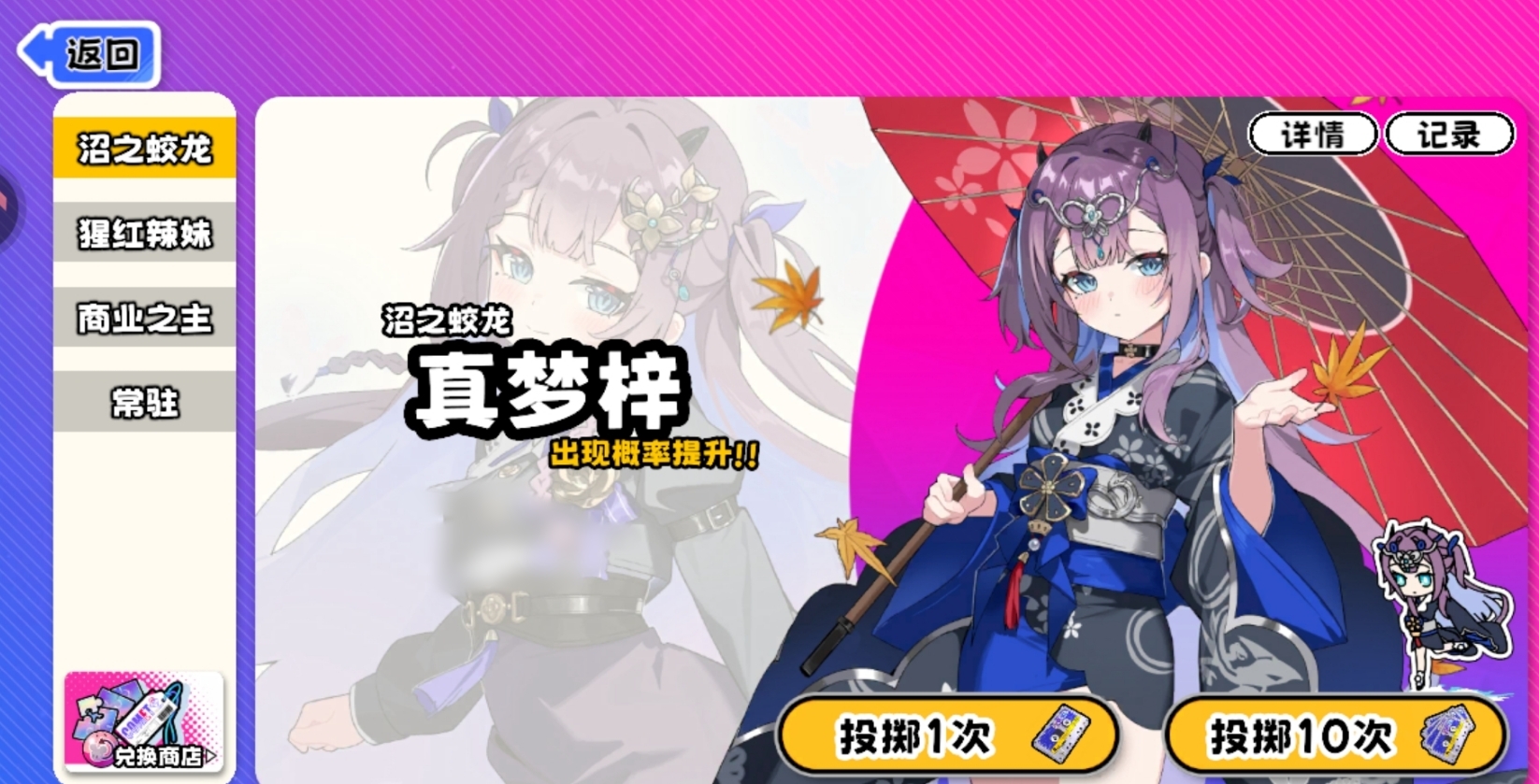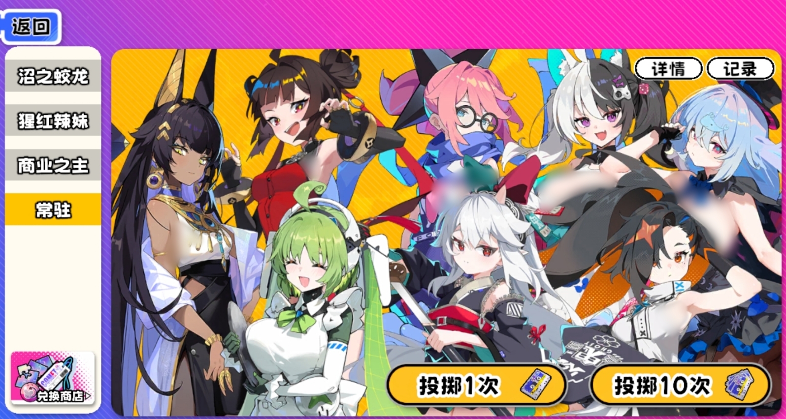 吉星派对里的卡池可简单分为UP池和常驻池,其中常驻池能抽取出所有吉星派对里的角色,但各个角色平分出货概率,且抽取时也无法进行指定。而UP池则不一样,它虽然也能抽取出已加入吉星派对的全部角色,但UP角色的出货概率会变高,即各位在抽出角色时,有更高的概率能获得卡池UP角色。所有卡池都可用抽奖劵来进行抽取,且每个卡池都有40抽必能获得角色的保底机制,不同卡池的保底并不会互通,但要注意UP卡池没有必定能获得UP角色的设定,而是采用了类似井票制的保底方式。