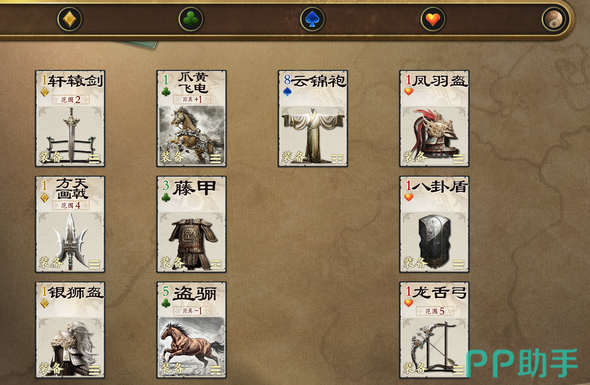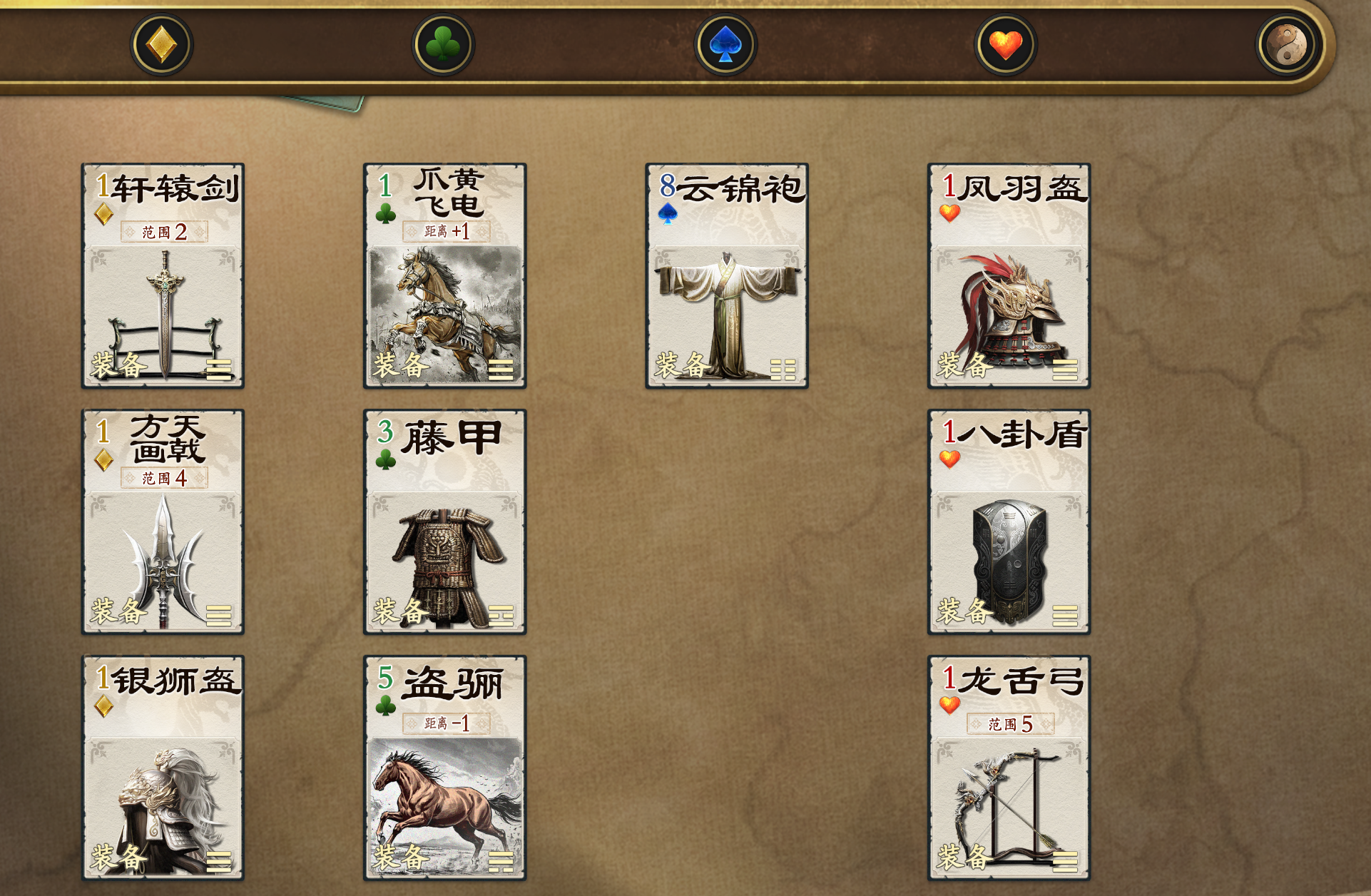 名将杀中的卡牌类型分为行动派、战法牌、装备牌等多种类型,武将可以利用行动牌打出杀、闪、桃、怒以及易等动作,战法就是使用技能了,而装备牌就更容易理解了,给武将穿戴的装备就是装备牌。