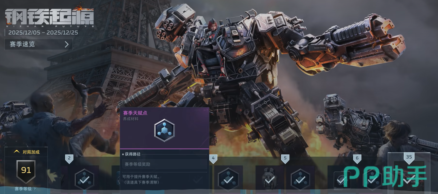 在这三个月时间里,玩家可以通过各种模式来获得赛季经验。不管是打猎场还是玩塔防,甚至是机甲战,都能涨经验值。赛季等级升上去之后,就能解锁各种天赋了,这些天赋可以根据自己的玩法习惯来搭配,组合出不同的战斗风格。等级越高能解锁的天赋就越多,选择也就更丰富。