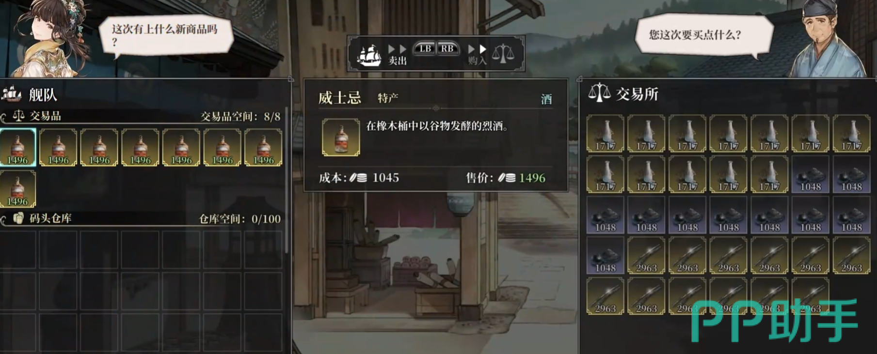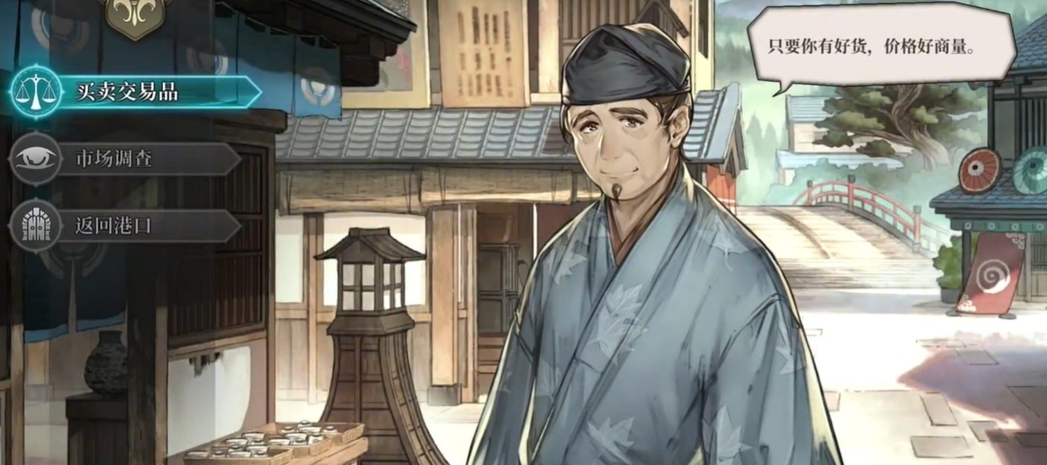 想要开始做贸易,首先得把船开到城市港口才行。到了之后打开港口的菜单,里面有个商业区的选项,点进去跟NPC对话就能进入交易所了。交易所里能卖的货物来源有好几种,可以是你打海战抢来的战利品,也可以是探险时候发现的宝物,当然最常见的还是从别的港口买来转手卖的商品。这里要提醒一句,在你准备开始交易之前,最好先去城里的茶馆转一圈。茶馆里有些专门做生意的NPC,跟他们聊聊能打听到周边其他港口的商业情况,这样你就知道哪些货物在哪里卖得贵,提前规划好路线能赚更多钱。