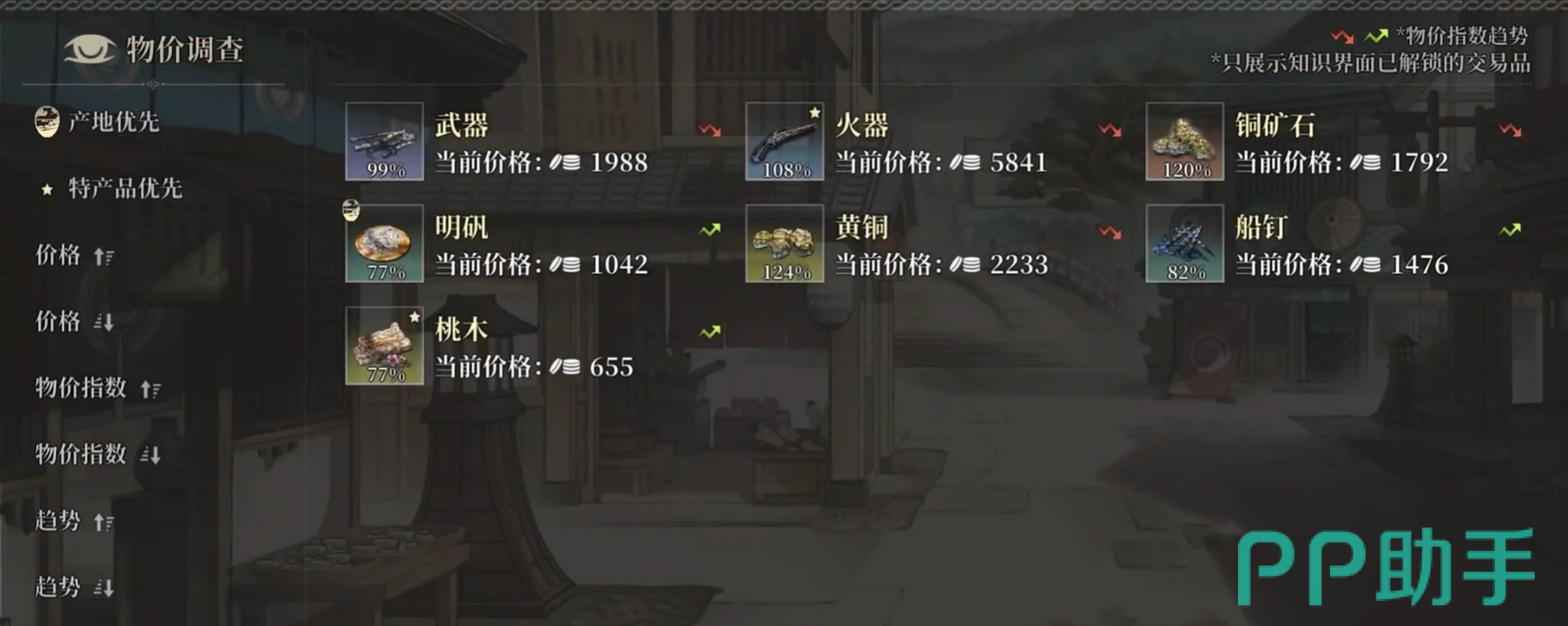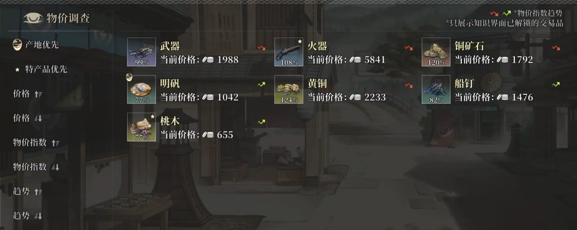 物价调查功能可以更详细地查看已经解锁的货物在当地的价格情况,包括溢价差异和未来的价格走势预测。多跑几次不同的航线,对比一下各个港口的价格差异,慢慢就能摸索出利润最高的交易路线。