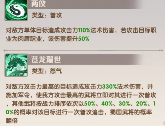 先来看一下抽卡,对于零氪党来说,也会拥有更多的幸福感。抽卡的次数还是比较实在的,可以通过白嫖的方法获得两个诸葛亮,拥有出色的输出。诸葛亮的怒气技能还是比较有优势性的,专打敌方攻击力比较高的目标。330%的法术伤害加上军令效果,就可以让我方攻击比较高的武将普攻追击。其他的武将还会按照战斗力概率去补刀,蜀国的武将大概率就会直接翻倍。除了boss基本上可以稳定的秒一个清场的效率还是比较出色的。