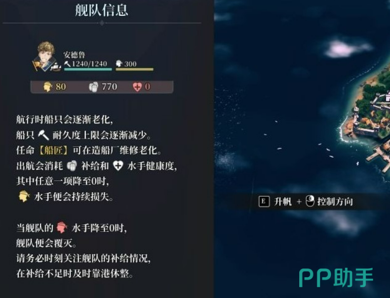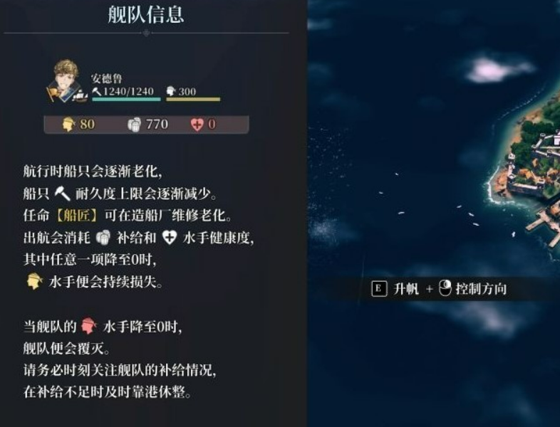 选完角色之后就该出海了。开船这件事说简单也简单,说复杂也复杂。风向会影响船速,洋流方向也得注意,不然可能越走越慢。手动操作的话需要一直盯着屏幕调整,挺累的。好在游戏里有自动航行功能,买了航线图之后,再配个测量员,船就能自己跑了。这样就会非常省事,不用自己一直操作。