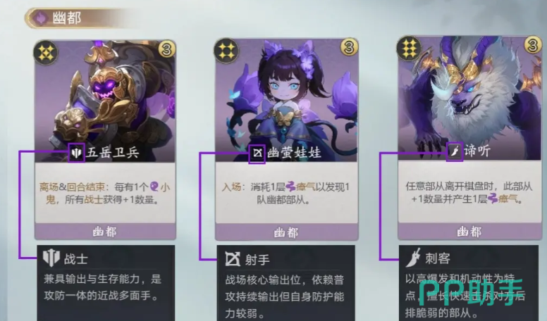 该流派的核心逻辑在于“资源—兵种—进化”三重正向循环:幽都资源层数每提升一级,全队基础属性同步强化;战士类单位承担前排承伤与持续输出双重职能,刺客与射手则负责精准切入与远程压制。小鬼作为战术支点,既可作为基础战力参战,也可出售换取金币,当数量累积至半数阈值时自动升阶为阎罗,完成质变突破。这一机制使阵容滚雪球效率显著高于其他势力。