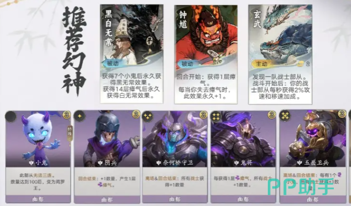 阵容成型路径清晰:前期优先锁定阴兵,其回合结束触发的鬼将技能可稳定补充战士数量;中期依靠五岳卫兵、奈何桥守卫与玄武形成三层协同——前者提供小鬼生成加成,后者增强部队规模,玄武则赋予全体战士攻速与移速增益。小鬼不仅是兵力来源,更是经济与战力转化枢纽;黑白无常作为关键幻神,可大幅缩短小鬼积累周期,解锁后直接激活双倍战力增幅,决定后期上限。