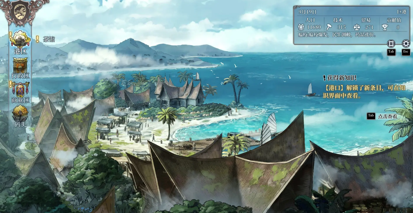 港口设施构成游戏经济与运营体系的核心节点。货行承担货物购销职能,支持跨港口差价套利;酒馆除恢复士气外,亦为水手招募主渠道,并隐藏多条情报类支线任务;造船厂提供船只购置与改造服务,但部分高级船型(如盖伦帆船)及强化项目(如龙骨加固)仅限特定港口开放;官府系统通过贡献值兑换贸易许可,该许可是开启高利润远洋航线的前置条件;码头用于整备船员编组与物资装载;商店则按类型划分,涵盖药剂、图纸、导航工具等,但多数初级港口暂未配置完整商栈。