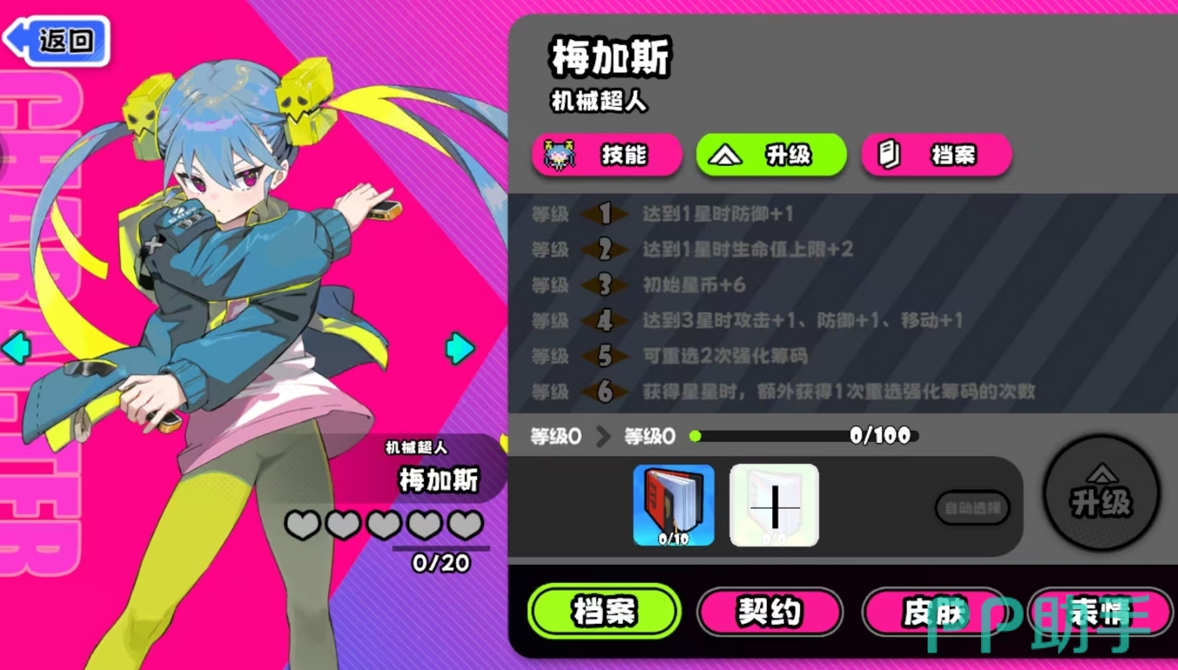 需注意的是,梅加斯缺乏攻击叠加类技能,面对Boss或高血量精英敌人时单体爆发有限。此时更推荐将其定位为功能型辅助:专注通过稳定弃牌获取星币、配合治疗类道具支援队友、或利用生存向升级强化队伍续航。从技能成长路径看,各等级升级主要强化星币收益与生命上限,而非基础攻击力,进一步印证其偏重资源运营与团队适配的设计定位。而在标准模式中,她凭借无距离限制的随机打击与高频率触发能力,仍稳居一线输出梯队。