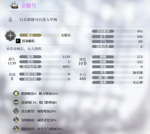 「金鹿号」则是新手阶段最高效的作战旗舰。尽管舱室数量略逊于大哈里号,但其综合战斗效能极为突出。获取流程简洁:于北欧卑尔根购入十单位橡木,沿汉堡—奥斯陆航线伏击海盗,待橡木升级为特级后,赴伦敦完成合约即可获得。船材来源多样——利古亚海100–200悬赏、北海同等级悬赏均会周期性刷新盖伦船,击落改装即用。特制瞭望台需迪里雅斯特技术值达800方可解锁,故推荐优先通过掠夺获取;而里斯本在技术值400以上时,已支持以天鹅绒、火器或宝石进行等价兑换。