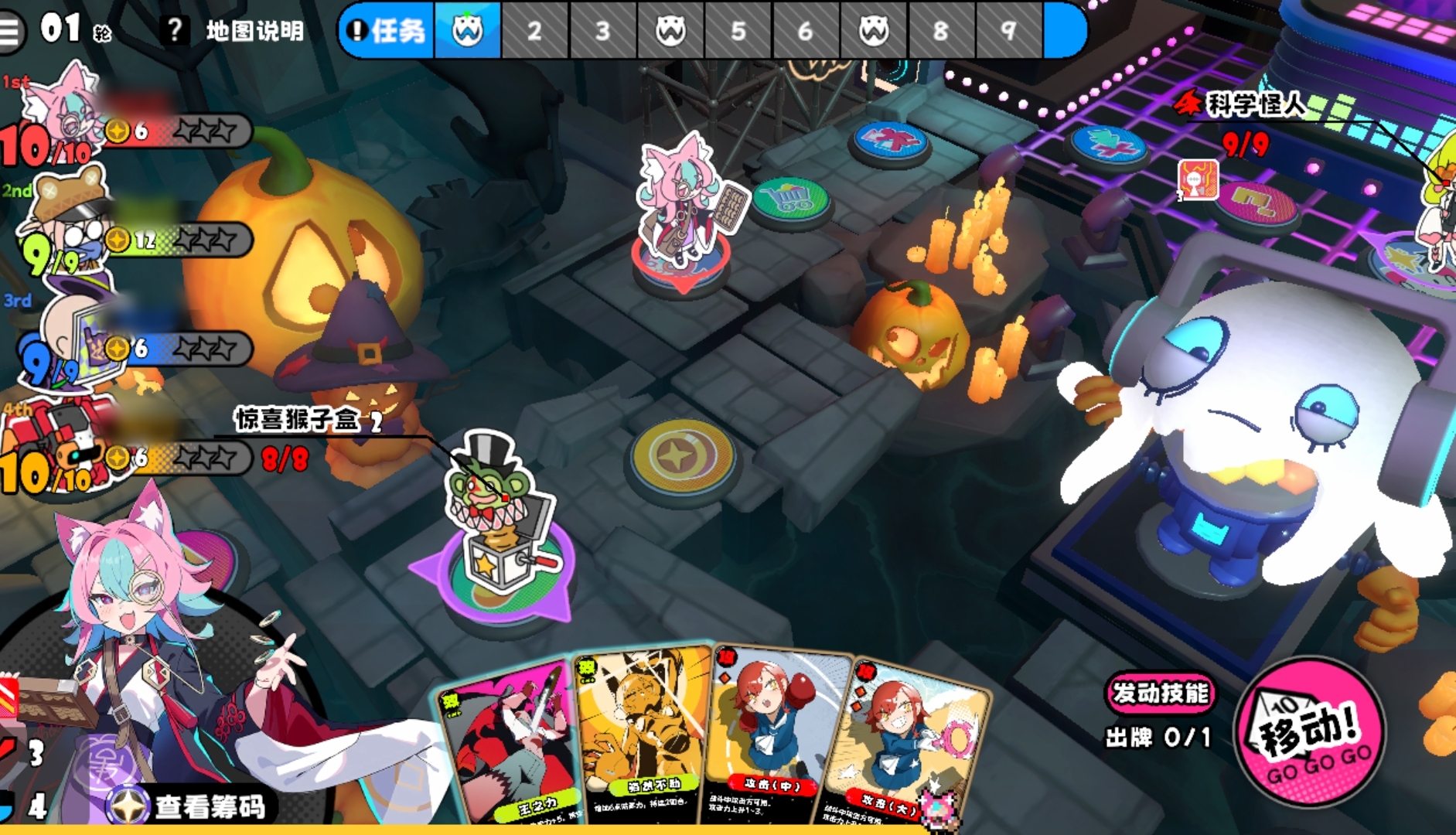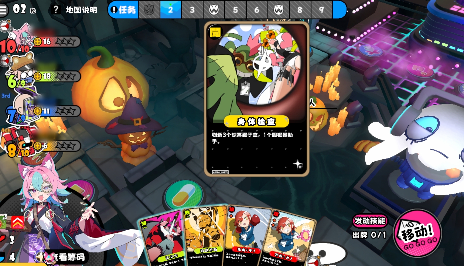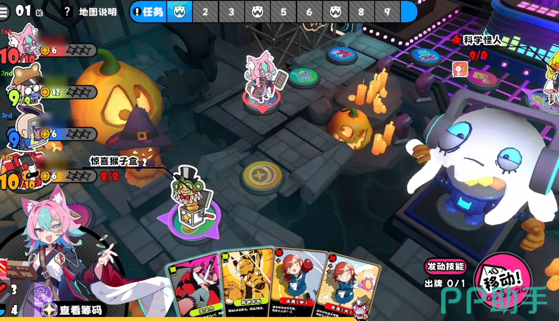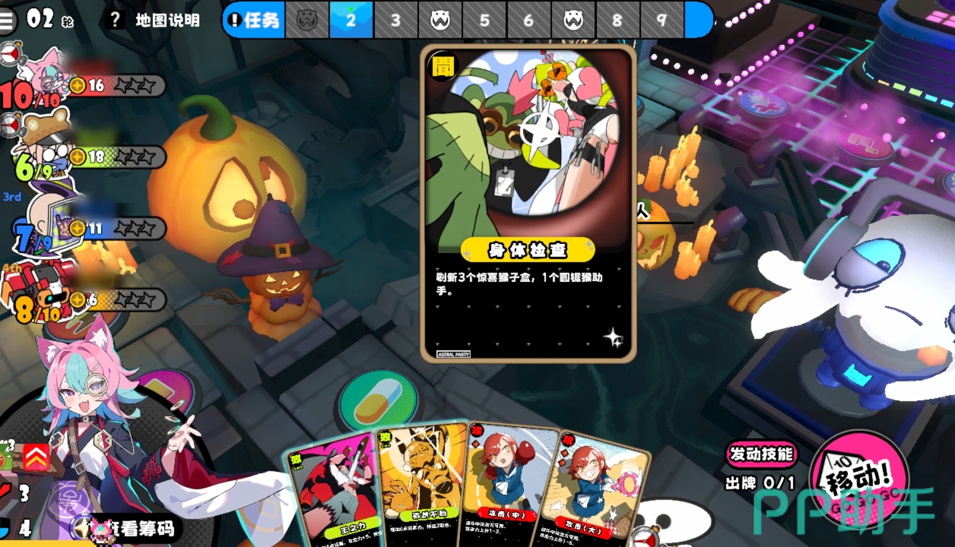 各位在游玩吉星派对的PVE模式时,将与其它玩家共同协作完成击败地图大boss的任务。每张图的大boss都不一样,他们也有着多种不同的机制,并且他们的机制可直接在左上方的地图说明里查看。当玩家们所选的地图难度较低时,可选择不走机制直接去击杀boss,但若是所选的地图难度较高,最好还是以走机制为主,强行去击杀boss的做法几乎不可能成功。此外,游戏会在正上方为人们进行回合标注,已完成的回合会变黑,当前正在进行的回合会高亮,而会出现地图事件的回合则会附带上怪物标识,点看就能看到该回合会发生的事件。