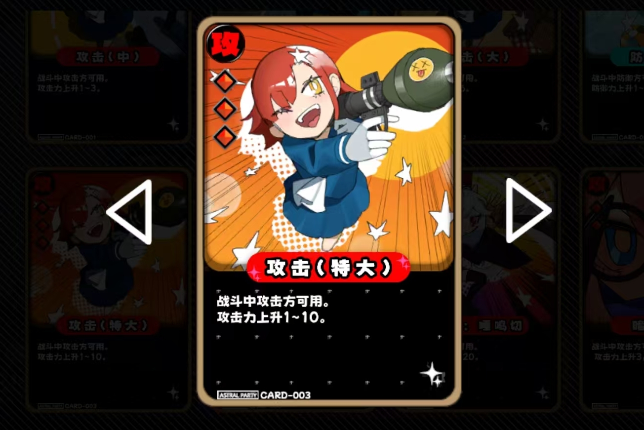使用攻击(特大)后,人们的攻击力能随机上升1至10点,只要自己投掷出来的点数不是特别小,且随机到的攻击力增长在5以上,那便能让自己打出极高的伤害。不过,该手牌平时无法使用,只能在攻击他人时选用,各位若是在商店里刷出它可优先买下来。