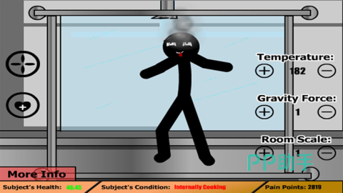 《火柴人刑讯室2》在游戏里,你将坐镇审讯室,去运用各种审讯的手段挖空心思的折磨火柴人,老虎凳、冰刑以及释放电击,各种花样的玩法,让你成为一位酷刑专家,游戏都还相对模拟出了有笑料百出的酷刑反应,还在面板上引入了不同的数值,比如玩家可以提升力量,去加速火柴人的痛苦等等。