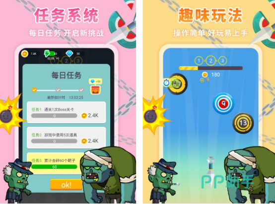 作为以飞刀为主的僵尸手游,将会让大家进入拥有着僵尸大军的环境中,为了能够保卫农场,必须要通过自己敏捷的能力,将手中的飞刀砍向僵尸,这样才能完成使命。如果你想要让自己具备的飞刀能力越来越好的话,可以提前的通过各种各样的关卡进行训练。也有超多趣味性的玩法,还支持装备升级,特别容易上手。