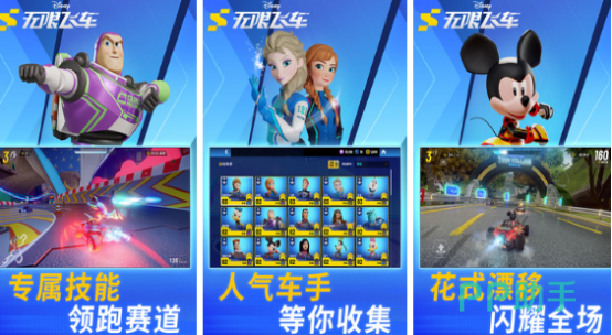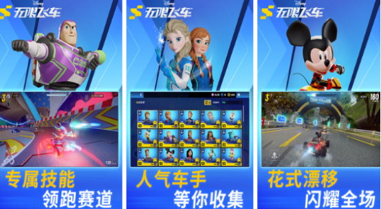 迪士尼中的童话角色是很多小朋友都特别喜欢的,比如艾莎公主、米奇、唐老鸭等,将迪士尼与竞技结合,花式漂移,闪亮登场,人气赛车手等你收集,还有定制升级功能,定制赛车之后成功夺得胜利,完成任务,参与活动,有机会解锁专属技能,在高难度赛道当中领跑赛道。由狂野飙车团队所打造的倾情之作,刷新你的赛车体验。