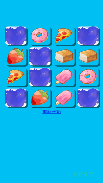 每一个零食的外观都采用卡通的风格设计,让整个零食看起来更加的美味可口,能够吸引玩家的眼球。这是一款比较考验玩家记忆力的配对游戏,需要在规定的时间内去记清楚每一个零食所在的位置,这样才能够顺利的找出两个相同的零食进行消除,在配对的过程中每一次的配对有三次翻牌的机会,所以玩家一定要在这三次机会中找到与之匹配的零食种类。