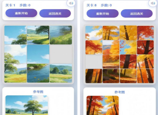 不仅拥有着现代的设计风格,而且还将经典的拼图玩法进行结合,无论你是哪个年龄段的,大家都能够在这里面感受超多关卡,以及充满着益智的玩法内容。在每一个关卡当中,都会将一个完整的图片分成不同的份数,你需要在不同的挑战当中,将每一块利用正确移动的方式,使整个图片成为完整的,就可以通过关卡。