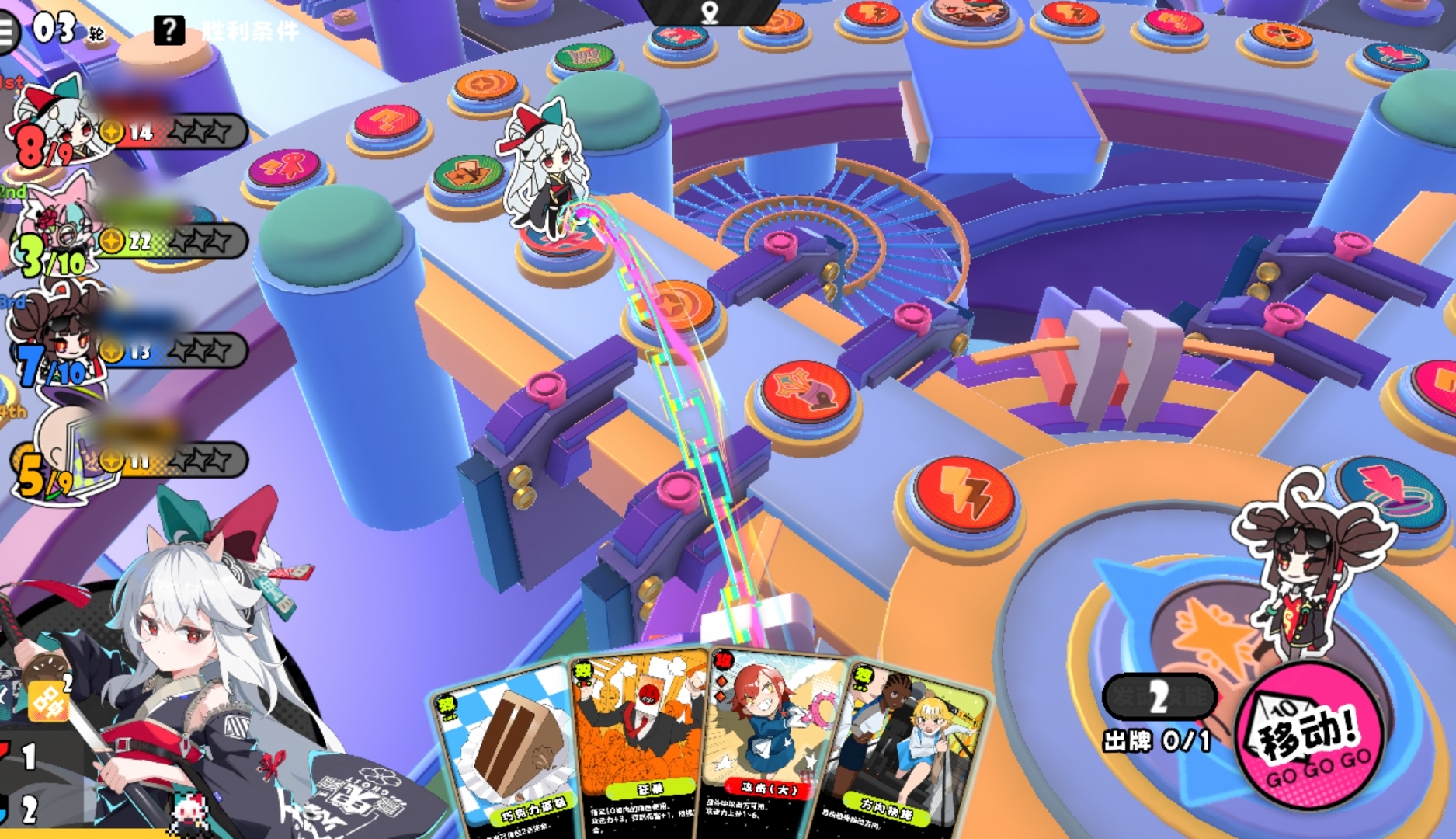 综合来看,稳健打法建议以长期驻留外圈为核心策略:优先踩踏外圈分布的奖励格子,结合手牌效果进行资源运营,稳步积累星币。在角色选择上,风水师、看板娘等具备稳定收益或环境调控能力的角色尤为适配。若倾向进攻型路线,则可选用茉莉或午夜闪光——前者能通过累积移动点数强化基础属性,后者在开启主动技能后可跳过战斗环节,并凭借额外移动点数实现高机动性走位,两者均对列车路径规避具有显著优势。
